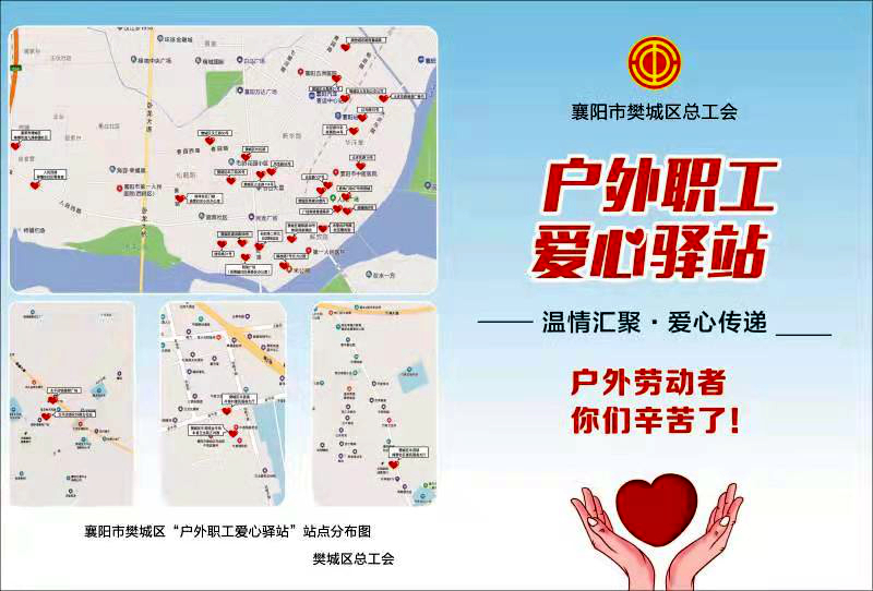 长期以来,户外职工的工作环境受到社会各界的关注与重视。为进一步服务好、关心好户外职工,樊城区总工会启动了以‘为爱行动,温暖全城’为主题的户外职工爱心驿站工程建设,结合辖区街道实际,构建起由社区与企业共同参与的驿站建设模式。前期,对爱心驿站的布局点位进行科学规划、合理选址。爱心驿站多分布于户外职工相对集中的区域,每个驿站间距约为步行20分钟的路程,从而确保大家能在较短时间内到达服务站点。