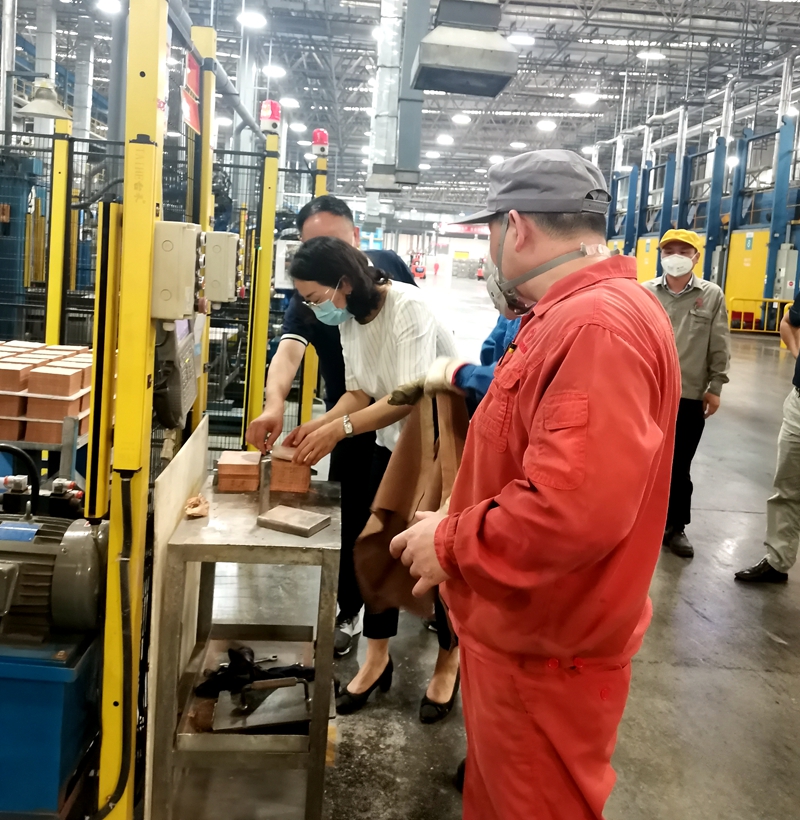 6月2日,市总工会二级调研员刘萍一行到三五四二工厂伙牌分厂向工人“拜师傅”“当学徒”参与生产劳动,与职工交朋友,开展交心谈心活动,了解企业生产经营状况,基层工会工作开展情况,职工生产生活状况、思想动态和期望诉求,在一线劳动中感受劳动最光荣、劳动最崇高、劳动最伟大、劳动最美丽的深刻内涵。