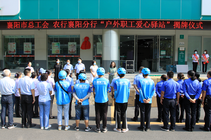 (通讯员:郭亮)8月6日上午,市总工会副主席梅玫,市农行襄阳分行党委委员、工会主席解顺林为市农行樊城支行“户外职工爱心驿站”揭牌,标志着市总工会与农行襄阳分行在城区联建的10家“户外职工爱心驿站”正式启用。市总工会对10个联建的“户外职工爱心驿站”赠送了微波炉和电冰箱。