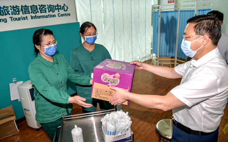 赵芝斌一行首先来到市疾病预防控制中心,对疾控中心工作人员表示亲切的慰问,为他们送上防控所需的慰问物资,并叮嘱工作人员在充分保护好人民群众的同时,多注意做好个人防护,确保自身安全。