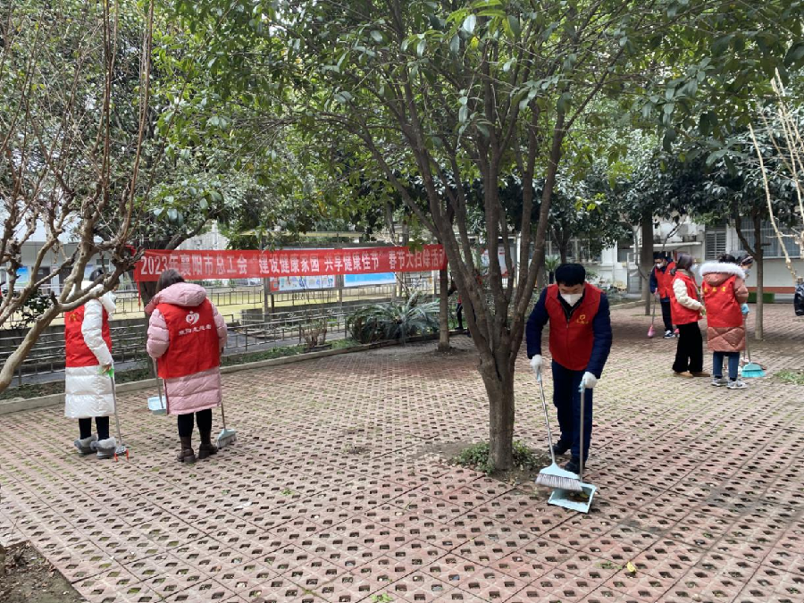 2023年新春佳节来临之际,市总工会组织志愿者们在包保社区开展“建设健康家园 共享健康佳节”春节大扫除活动。