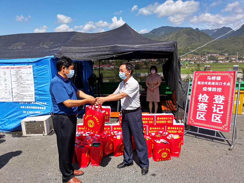 县总工会副主席龚越程、姚平先后来到相关乡镇卡点和县城隔离酒店开展慰问活动,为他们送去了慰问物资。