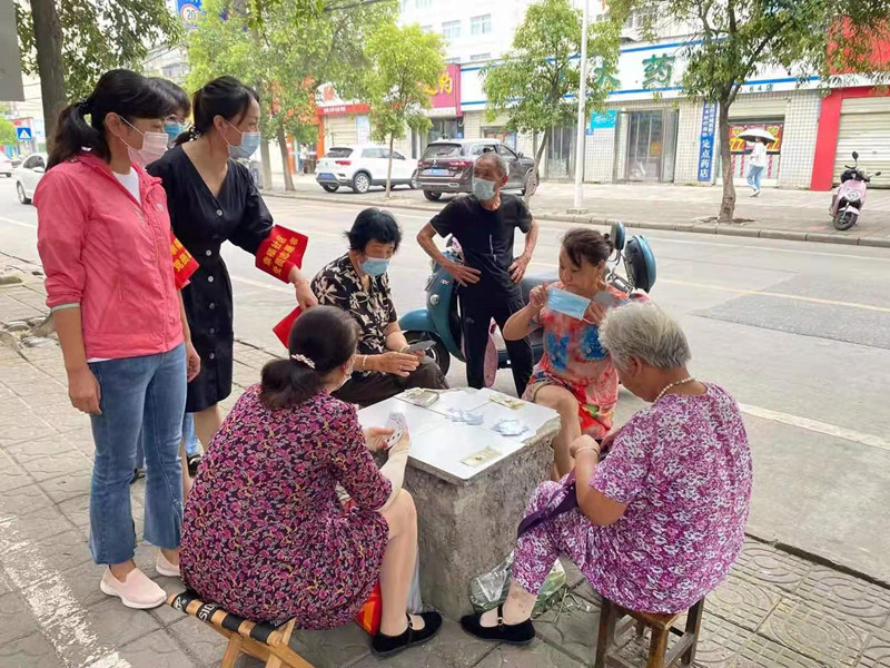 8月6日,樊城区总工会党组书记、常务副主席金荣一行到包保单位中原街道幸福社区参与疫情防控工作。活动中,对外聚集不戴口罩玩乐的老人进行劝阻、要求他们不扎堆,在人多的地方一定要科学佩戴口罩。对辖区内的麻将馆进行检查,查看是否还存在聚集现象。