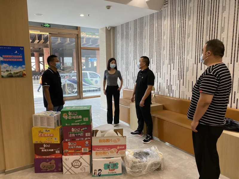 清河口党工委书记张早玲来到清河口办事处隔离点,为值守的同志送上了方便面、矿泉水等物资,希望他们履职尽责,切实落实好疫情防控相关措施,用工会人的担当与使命阻击德尔塔毒株的传播。