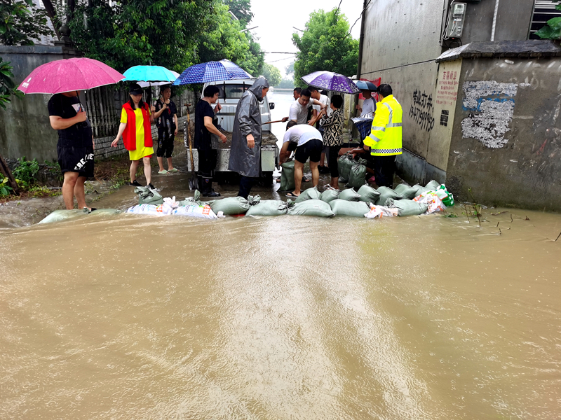 抗洪现场,工作组与村两委班子带头装沙袋,帮助地势低洼处的村民堵住倒灌入户的雨水;挖开堵点泥沙,疏通水流;实地察看化冲水库水情;走访看望村里留守老人和五保户;巡查村内老旧房屋,及时转移被困村民。