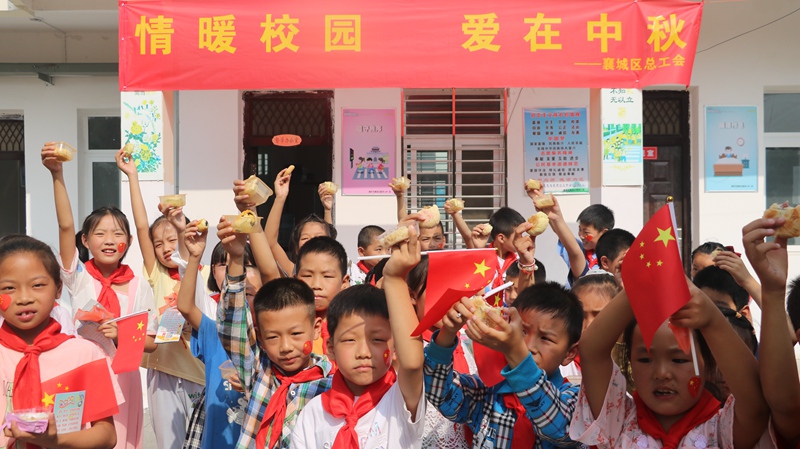 9月16日上午,襄城区总工会、区妇联、团区委、湖北凌晟药业有限公司在卧龙镇鄢洲小学开展“情暖校园 爱在中秋”关爱留守儿童活动,为学校全体师生送去中秋月饼及节日的祝福。