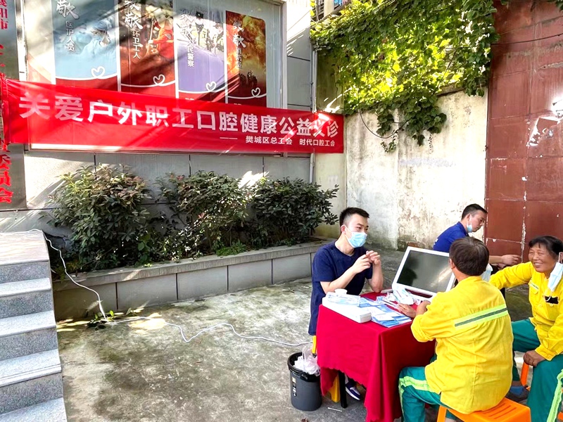 (通讯员:尚白莹)9月10日下午,樊城区总工会联合襄阳时代永恒口腔医疗管理有限公司工会在樊城区职工服务中心户外职工爱心驿站举办“关爱户外职工口腔健康公益义诊”活动,为环卫工人、城管队员、交警、外卖员、快递员等户外劳动者送去“爱心”义诊服务。