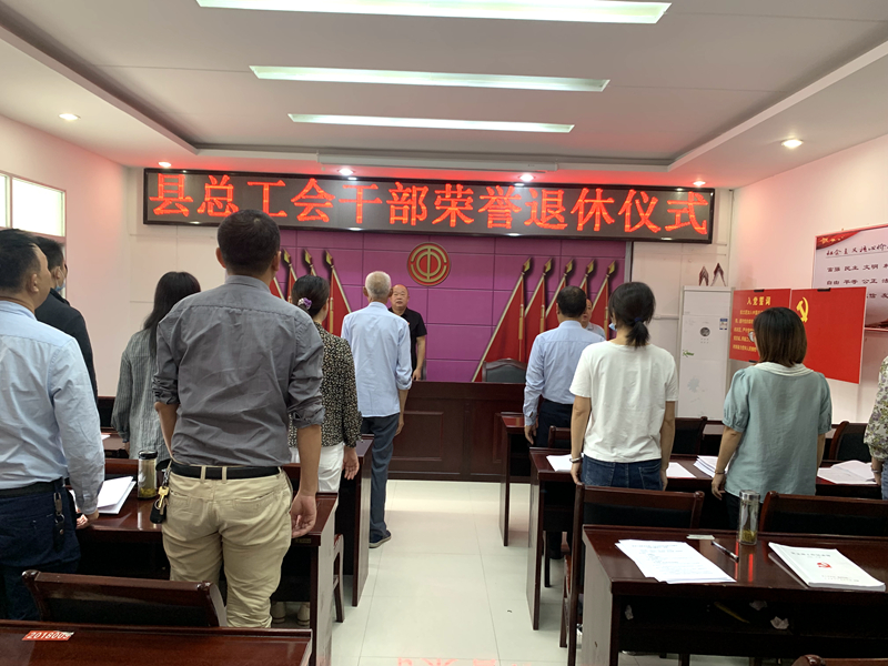 仪式上,全体党员干部齐唱国歌,重温入党誓词,县总工会副主席全克成宣读了退休通知,并为王忠宽同志颁发了退休证书,副主席冯青为王忠宽同志颁发了纪念品。随后,王忠宽同志作退休感言,深切表达了对组织多年来培养关心的感激、感谢之情,表示将珍惜荣誉,继续发挥余热,关心关注工会事业的发展。