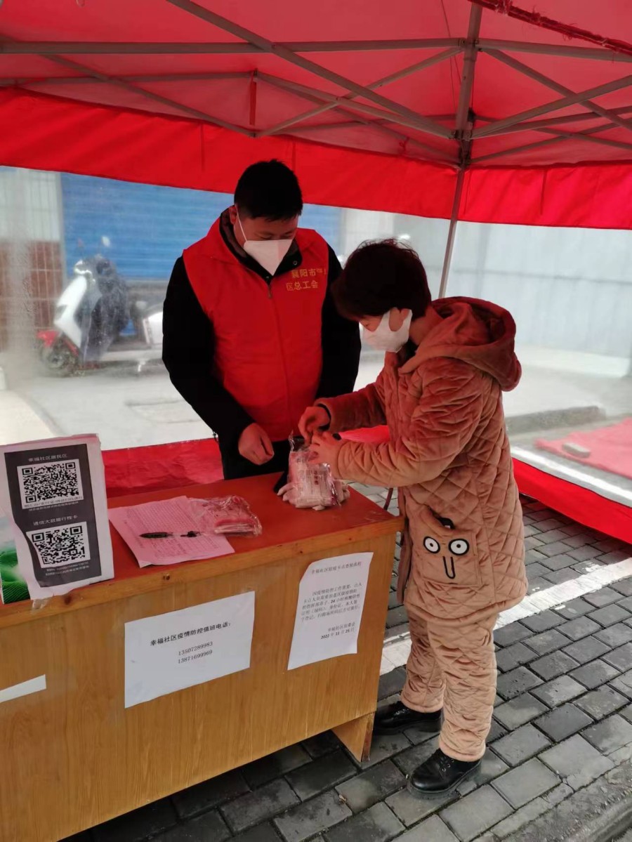 (通讯员:尚白莹 杨曦)面对复杂严峻的疫情防控形势,樊城区总工会全体党员干部勇于担当、向“疫”而行,下沉到樊城区幸福社区疫情防控一线,从严从紧落实各项疫情防控措施,助力疫情防控工作。全体机关党员干部下沉包保社区,主动承担小区“志愿者”职责,协助社区做好闭环管理、核酸检测、物资发放、卡口值守等工作,用实际行动诠释工会干部的使命和担当。 人员下沉,助力“疫”线防控。 全员下沉打好总体战。11月19日,区总工会机关干部兵分两路奔赴“疫”线,一批队伍马不停蹄赶赴中原幸福社区报到,另一批因封控原因居家不能出门的党员干部就地参与居住地社区防控工作。“戴口罩,做核酸,提前亮码。”大家纷纷拿起扩音器“扫楼”。他们与社区工作者一道,协助社区为居民核酸检测,热心开展点位指引,细心提醒保持距离,合力筑牢社区防线。核酸检测任务结束后,他们又迅速返回社区封控的唯一“大门”进行值守,全身心“静下来”,投入到值守工作中。 组建“骨干班”打好攻坚战。因幸福社区辖区内多是年龄偏大的居民,又赶上老旧小区改造施工中,辖区内环境复杂,做好居民封控任务艰巨。区总工会抽调骨干充实幸福社区防疫力量,严格执行下沉要求,与时间赛跑,同病毒较量,“骨干班”吃住在一线,把艰难和危险留给自己,已连续值守一周时间。 慰问下沉,提振抗“疫”信心。 11月27日下午,市总工会联合樊城区总工会为樊城区疫情防控指挥部、交通卡口、隔离场所及10个镇(街)赠送牛奶、面包、雪饼、金刚酥、水果等共计500份爱心礼包,价值10万元的物资慰问。同时,区总工会配套慰问资金近5万元,为部分镇街、包保村、社区送去口罩、酒精、84消毒液、手套等医疗物资以及鸡蛋、面包、牛奶、方便面等生活物资,全力支持全区疫情防控工作。 困难时刻,区总不忘包保联系的村、社区。为包保的幸福社区的困难群众赠送蔬菜包400余份,为包保熊集村赠送酒精、84消毒液,外科医用、N95口罩等物资,将为迅速扑灭本轮疫情贡献工会力量。 服务下沉,助力攻坚克“疫”。 为配合做好疫情防控工作,解决各类抗疫一线工作人员工作强度大、精神压力大、生活保障不足等实际问题,改善他们的工作生活条件,樊城区总工会充分发挥工会组织力量,积极协调辖区户外职工“爱心驿站”,改善工作人员的工作生活条件,变身成为“抗疫加油站”。 目前全区现有10家户外职工爱心驿站每日正常开放,为坚守一线的环卫工人、外卖小哥、城管队员等提供暖心便民服务。另有7家户外职工爱心驿站变身“抗疫加油站”,24小时开放,为抗疫一线工作人员提供饭菜加热、手机充电等服务,为无法回家的人员提供休息场所;部分“爱心驿站”被改造为临时核酸检测点,方便了市民,也为医护人员挡风遮雨。