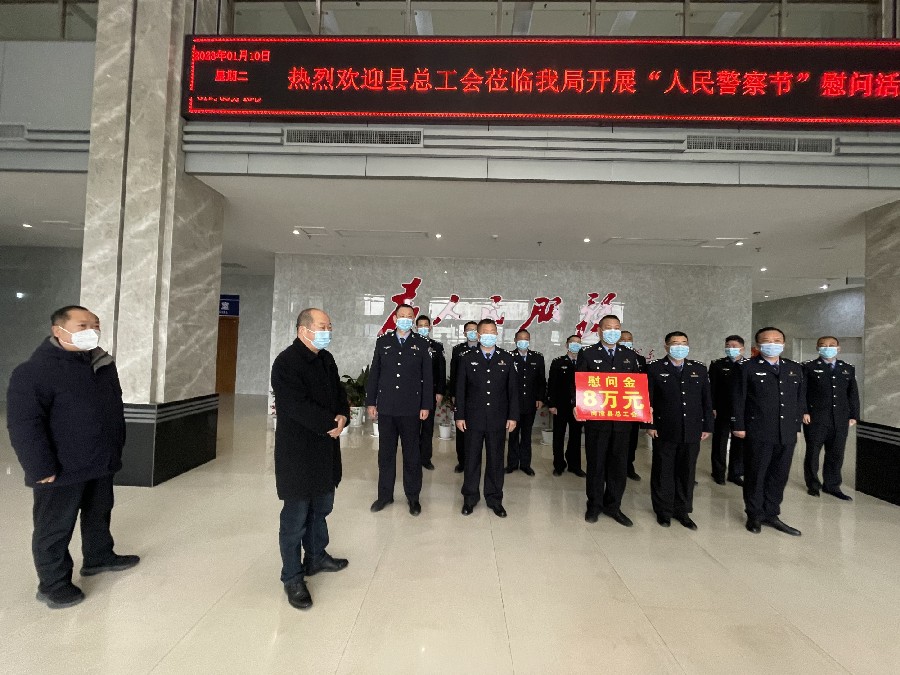(通讯员:张玲溪 赵云)1月10日是第三个“中国人民警察节”,南漳县总工会党组书记、常务副主席廖明伟一行来到南漳县公安局向公安系统干警致以节日问候和诚挚慰问。南漳县副县长、公安局长杨明全,公安局党委班子成员及局直单位主要负责人参与活动。 廖明伟一行参观了“情指勤舆”一体化作战中心,观看了警察节专题视频,了解公安机关的日常工作,对南漳公安忠诚履职、笃行不怠、勇毅前行、攻坚克难、担当奉献的精神给予了充分肯定。 随后,廖明伟代表南漳县总工会向县公安局工会发放了一线职工春节慰问金8万元。 春节前夕,南漳县总工会将持续开展“送温暖”活动,向劳模工匠、困难企业、困难职工和坚守在一线的各行各业劳动者送去慰问资金和物质,做好后勤服务和保障,将党委政府和工会“娘家人”的温暖送到职工心坎上。