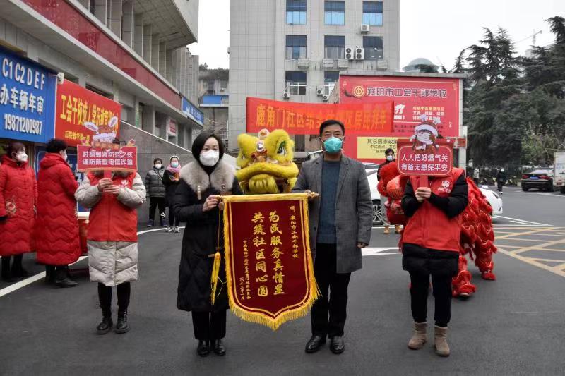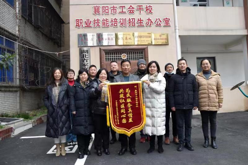 (通讯员:王磊)1月10日,樊城区鹿角门社区书记胡丹到襄阳市工会干部学校广场校区送来的致谢锦旗,感谢学校对社区各项工作的支持与协助。 近年来,市工会干校党委心系社区,科学统筹,积极参与包保社区鹿角门社区的各项工作。疫情期间,力所能及的为社区分忧解难,在场地不足时,及时在广场校区专门腾出一间带空调的培训大教室作为社区核酸检测点。人员不足时,组织职工参与社区核酸检测工作,学校在职21名党员成立了“党员突击队”,由校党委班子成员带队下沉社区一线,班子成员做到身先士卒、冲锋在前,全体党员也做了到应下尽下,全员下沉。 疫情防控期间,干校党委班子组织职工参与社区扫码测温,维护核酸检测现场秩序,帮助不会使用手机的老人申请健康码,宣讲疫情防控小常识,提醒安全一米线,挨家挨户地扫楼统计,积极参与社区组织的疫情防控、文明帮扶、文明劝导、入户宣传、环境治理和信息录入采集等工作。