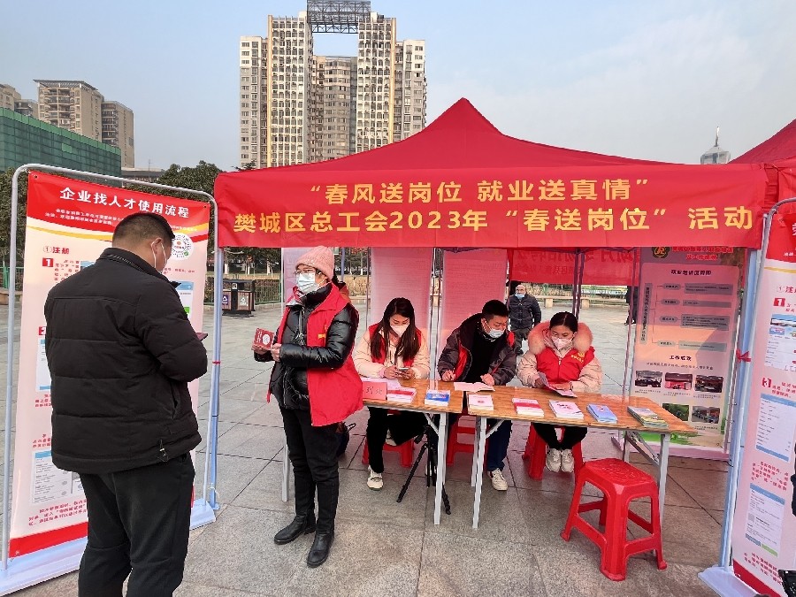 (通讯员:尚白莹)春风送岗位,就业送真情。2月1日上午,樊城区人力资源和社会保障局、樊城区公共就业和人才服务局等单位联合樊城区总工会在樊城区人民广场开展了“春风行动”大型现场招聘会。为企业用工提供招聘平台,为求职者送政策、送岗位、送服务。