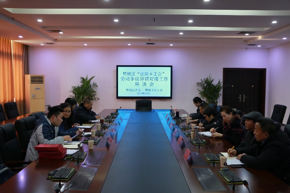 (通讯员:段小平)2月3日,樊城区“法院+工会”劳动争议诉调对接工作座谈会在樊城区人民法院劳动争议诉调对接工作室召开。区人民法院副院长耿宏伟,区总工会副主席李华,区人民法院立案庭庭长杨全胜参加会议。