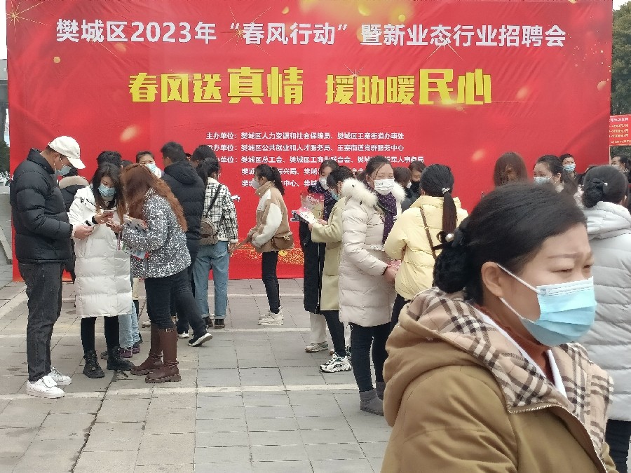 (通讯员:张杰)2月10日,樊城区总工会联合区人力资源和社会保障局、王寨街道办事处,在瑞城国际广场开展2023年“春风行动”暨新业态行业专场招聘会,为企业和劳动者搭建对接平台,提供就业服务。