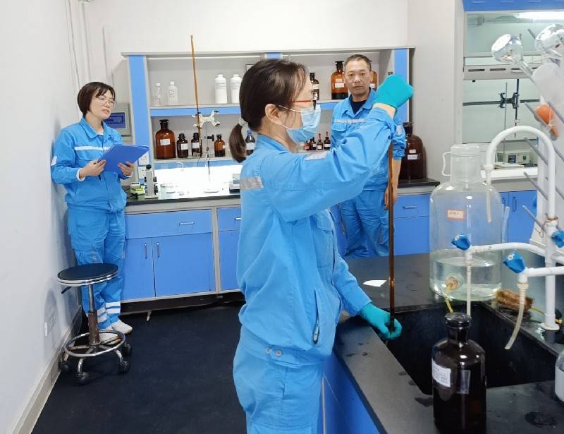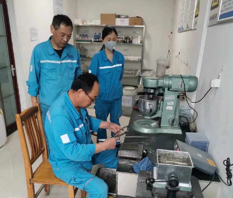 活动在公司技术中心物检成型室和化学分析室进行,公司化学分析组和物理检验组全体在岗人员参加比赛,比赛项目设为工业盐的检测和水泥胶砂强度检测。为确保“比武”活动能够扎实、有序开展,公司成立了“比武”专项考评组,并制定详细的考评方案。