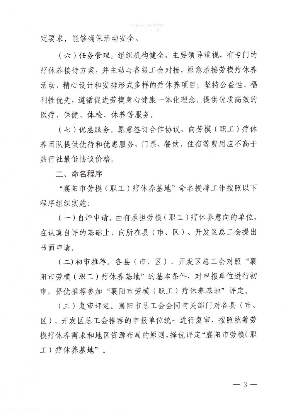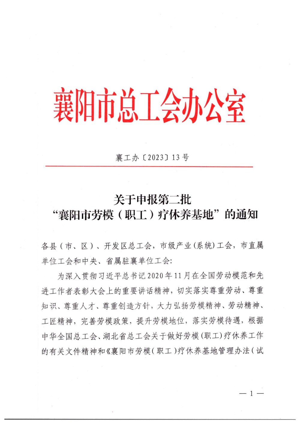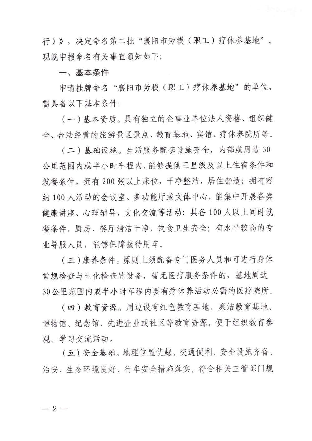 关于申报第二批“襄阳市劳模(职工)疗休养基地”的通知