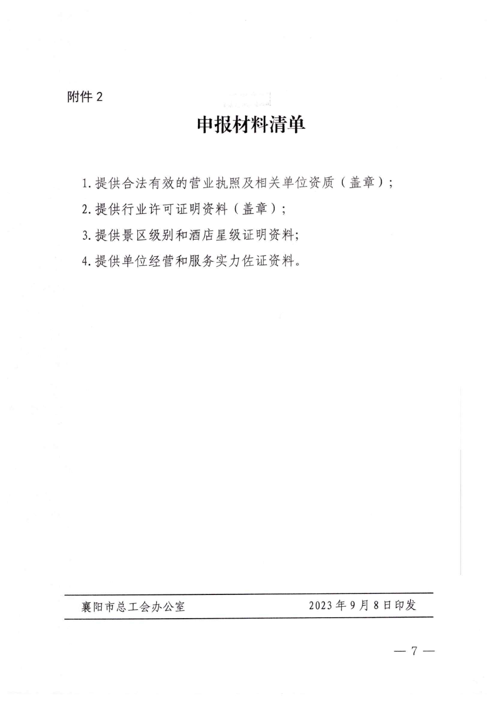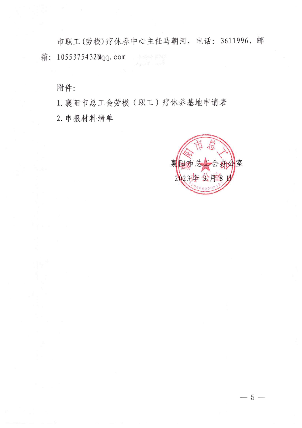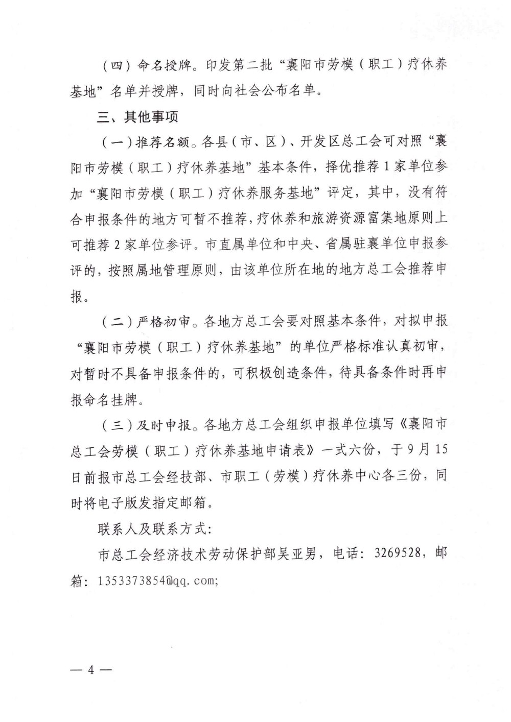 关于申报第二批“襄阳市劳模(职工)疗休养基地”的通知