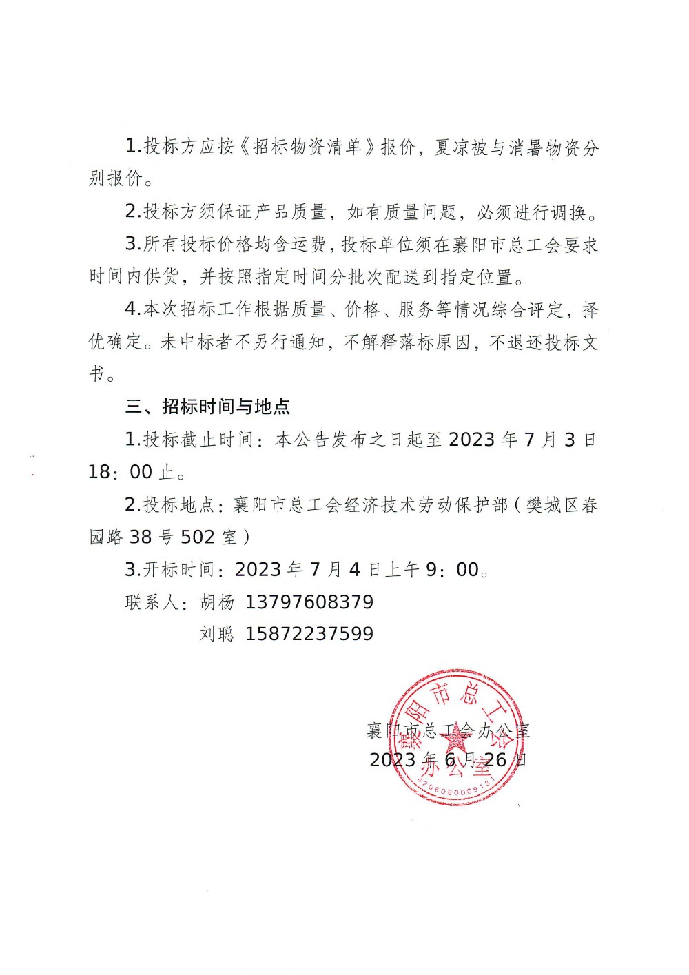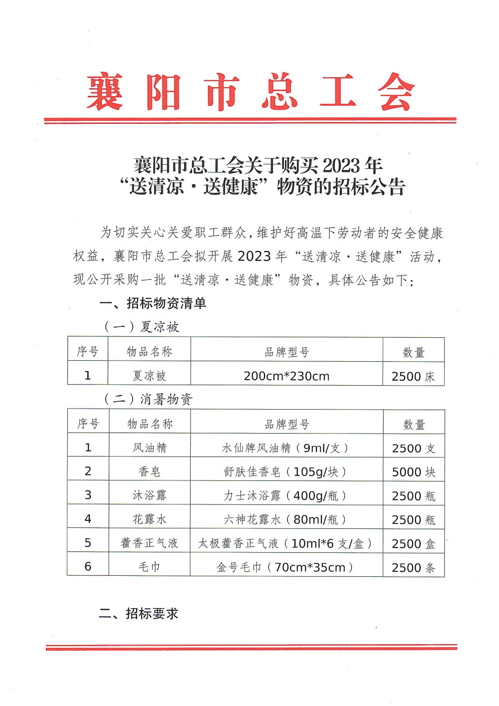 79991cm德彩网2023年“送清凉·送健康”物资招标公告
