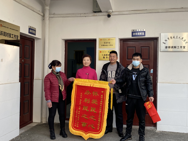 (通讯员:肖天凤)近日,樊城区“法院+工会”劳动争议诉调对接工作室,收到了6名当事人送来的印有“怀爱民之心,办利民之事”的锦旗,感谢“法院+工会”调解室及调解员尽职尽责为他们追回工资。