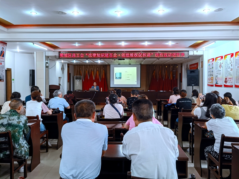 (通讯员:冯凯)7月6日,樊城区总工会先后在屏襄门苏宁易购销售有限公司和红光社区举办“法律知识进百企·依法维权促和谐”法律宣讲活动。
